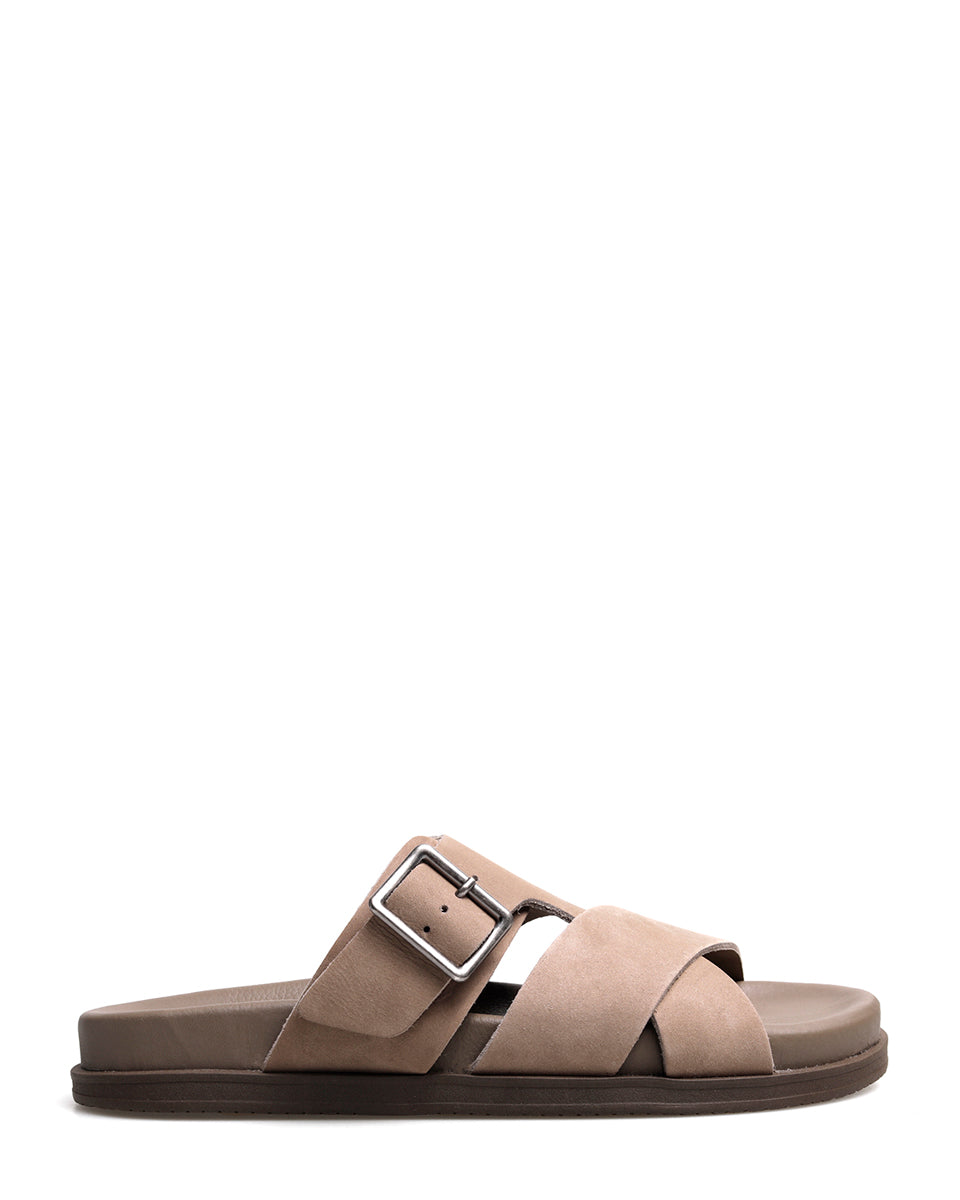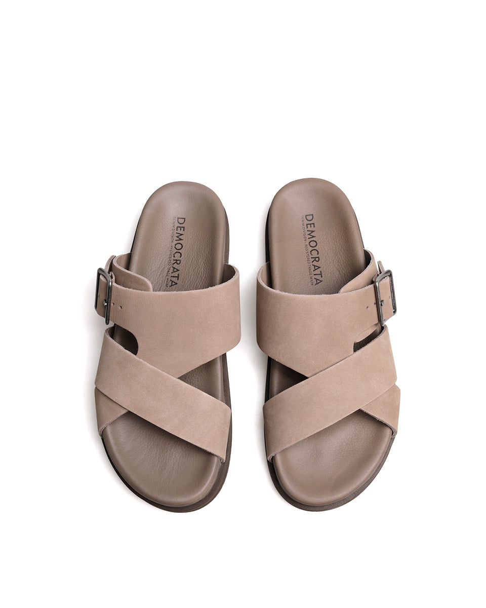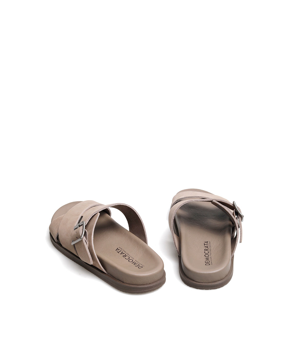 Su diseño con tiras anchas cruzadas en forma de “X” brinda firmeza y un calce seguro, mientras que el cierre con hebilla permite un ajuste personalizado.