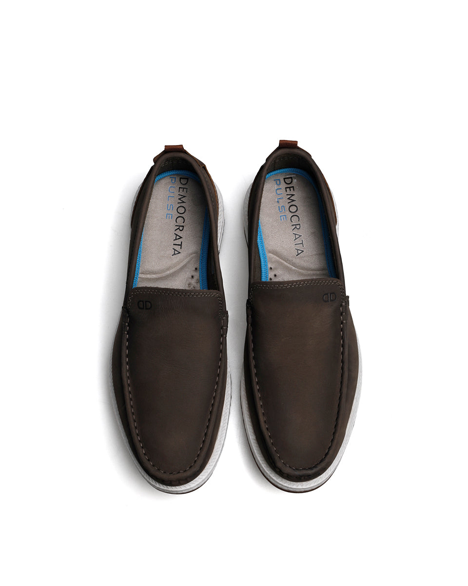 El mocasín estilo náutico FLOP EASY es un calzado cómodo y práctico. Fabricado en cuero vacuno con acabado mate sin forrar, cuenta con plantillas de PU para maximizar el confort. Cuenta con el logo de la marca en la parte superior. La base de TPU, con tecnología Pulse, garantiza una pisada mullida y ligera.