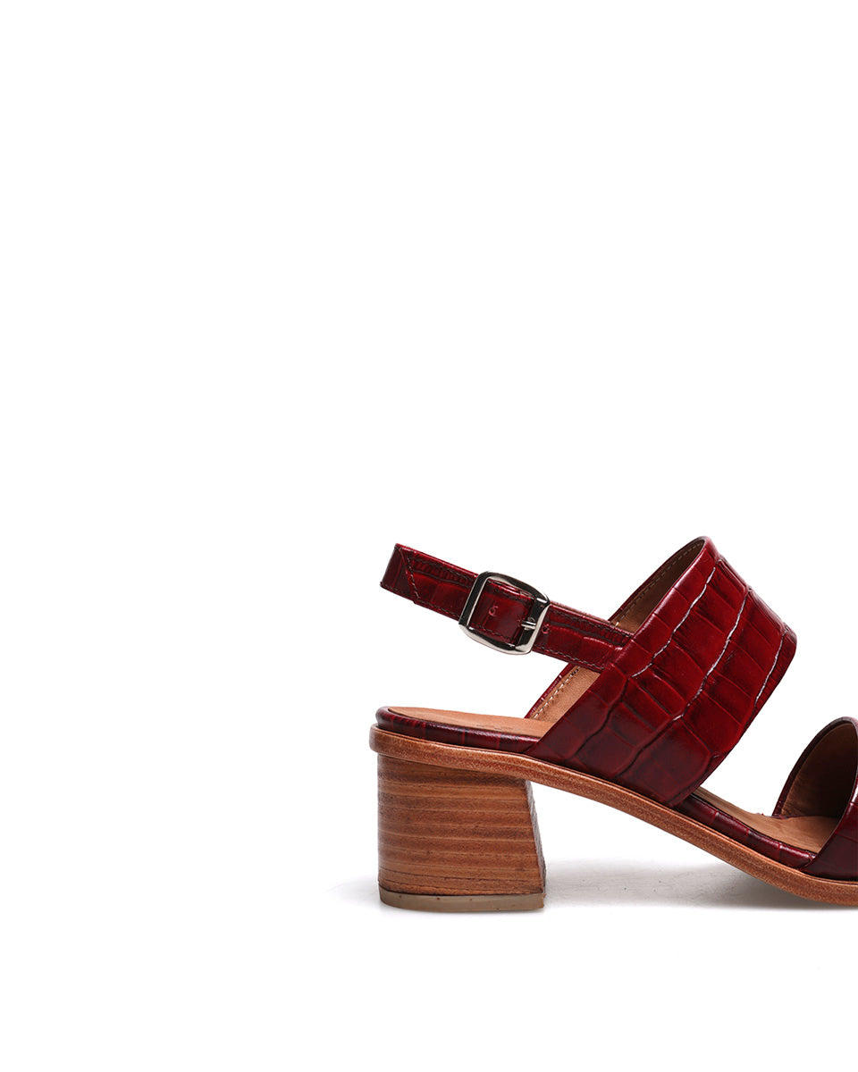 AFTER es una sandalia de cuero con textura croco que aporta carácter y sofisticación al diseño. Sus tiras firmes y el taco foliado logran un equilibrio entre estilo y comodidad, ideal para looks urbanos o de vestir. Un modelo versátil, confeccionado con materiales nobles y terminaciones cuidadas que elevan cualquier outfit.