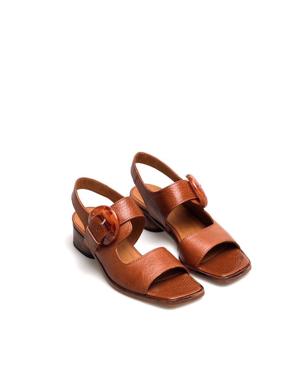 ARLO es una sandalia de cuero natural forrada en cuero, con base de suela y taco foliado de altura media. Su diseño simple y equilibrado se realza con una hebilla acrílica que aporta un detalle distintivo. Un modelo de estilo natural y sobrio, con un aire canchero que lo hace versátil para distintas ocasiones.