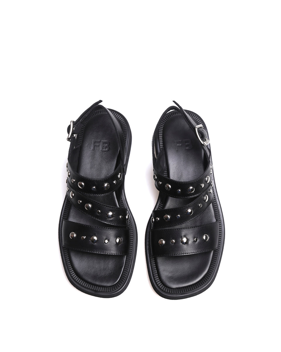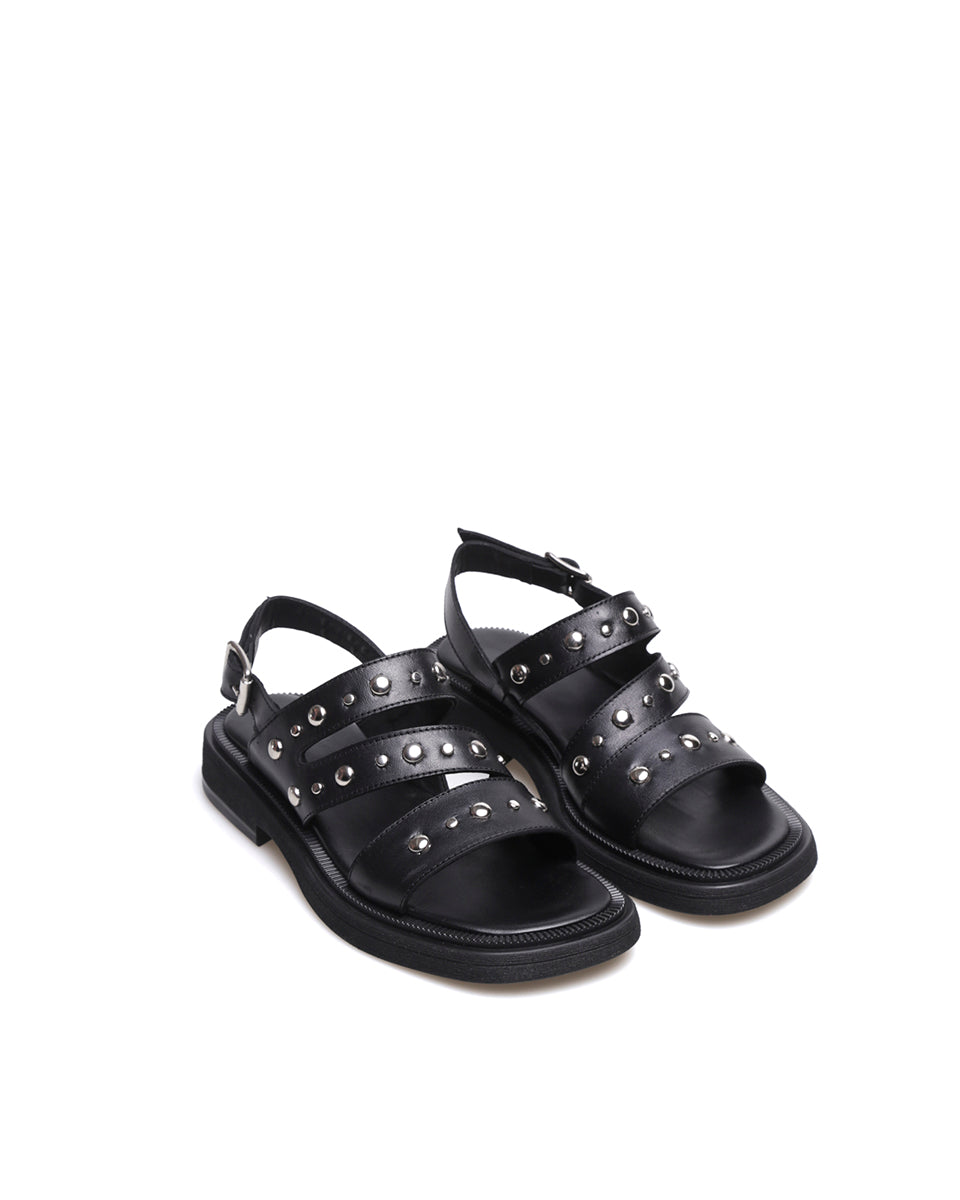 CAPRI es una sandalia de cuero con tiras finas y tachas. La base de goma es flexible y acolchada. La puntera ligeramente cuadrada le suma carácter. Se sujeta con una hebilla hacia el talón. CAPRI es una sandalia tan cómoda como linda, ideal para sumar un toque vistoso a todos tus outfits.