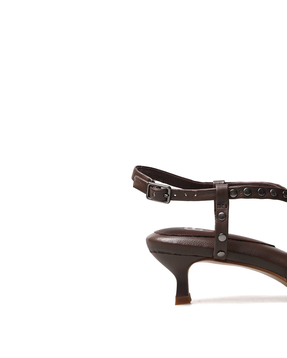 CAYA es una sandalia elegante y vanguardista. Está realizada en cuero y su plantilla es mullida. La punta cuadrada se complementa el taco chupete y con las finas tiras con tachas dando como resultado una sandalia original y cómoda con fuerte personalidad.