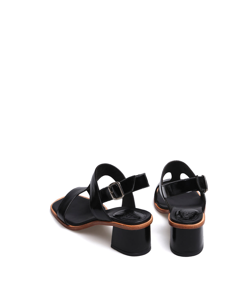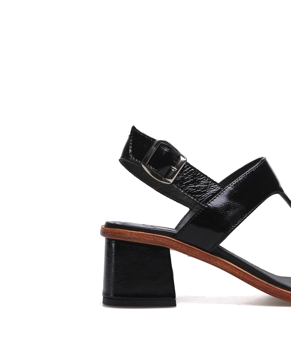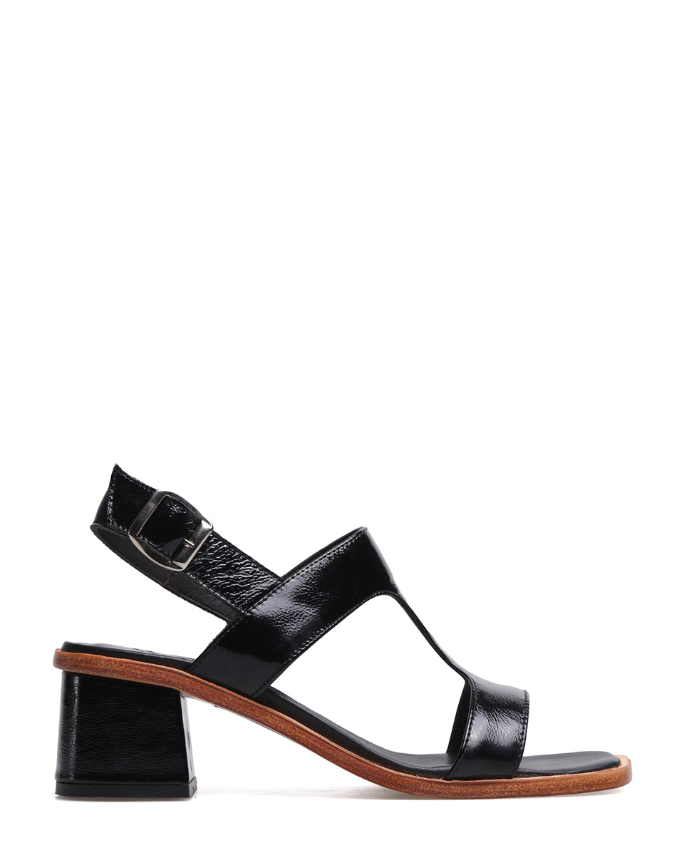 DEBBI es una sandalia elegante que combina el brillo del charol con detalles clásicos y actuales. Su silueta estilizada y la puntera levemente cuadrada la convierten en un calzado versátil, ideal para elevar looks tanto de día como de noche.