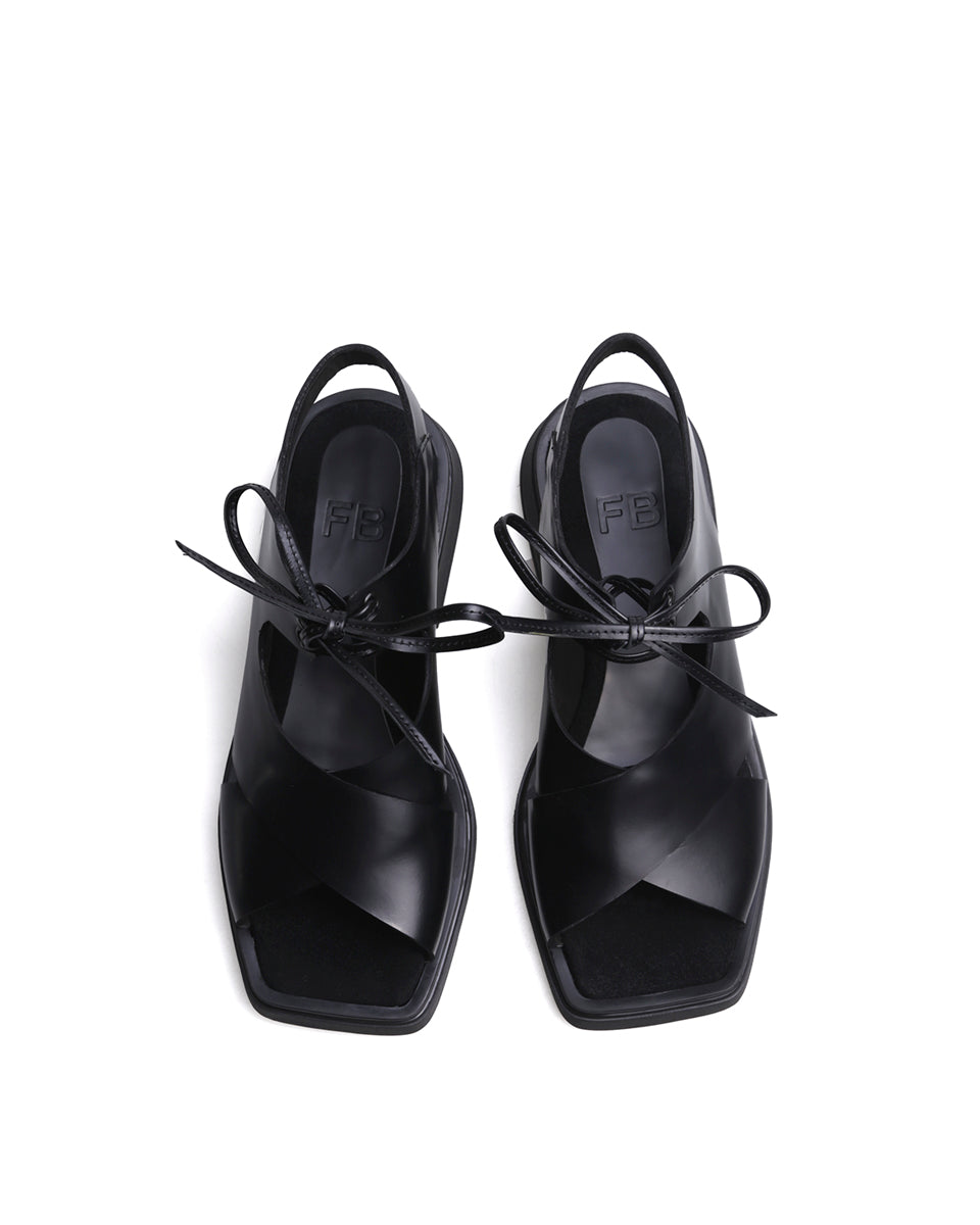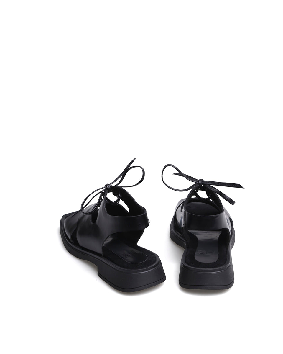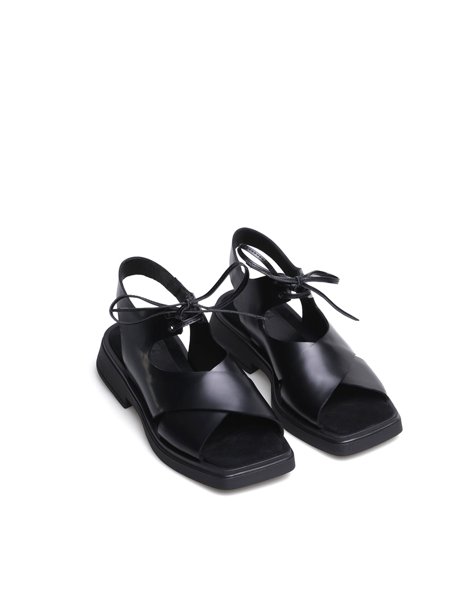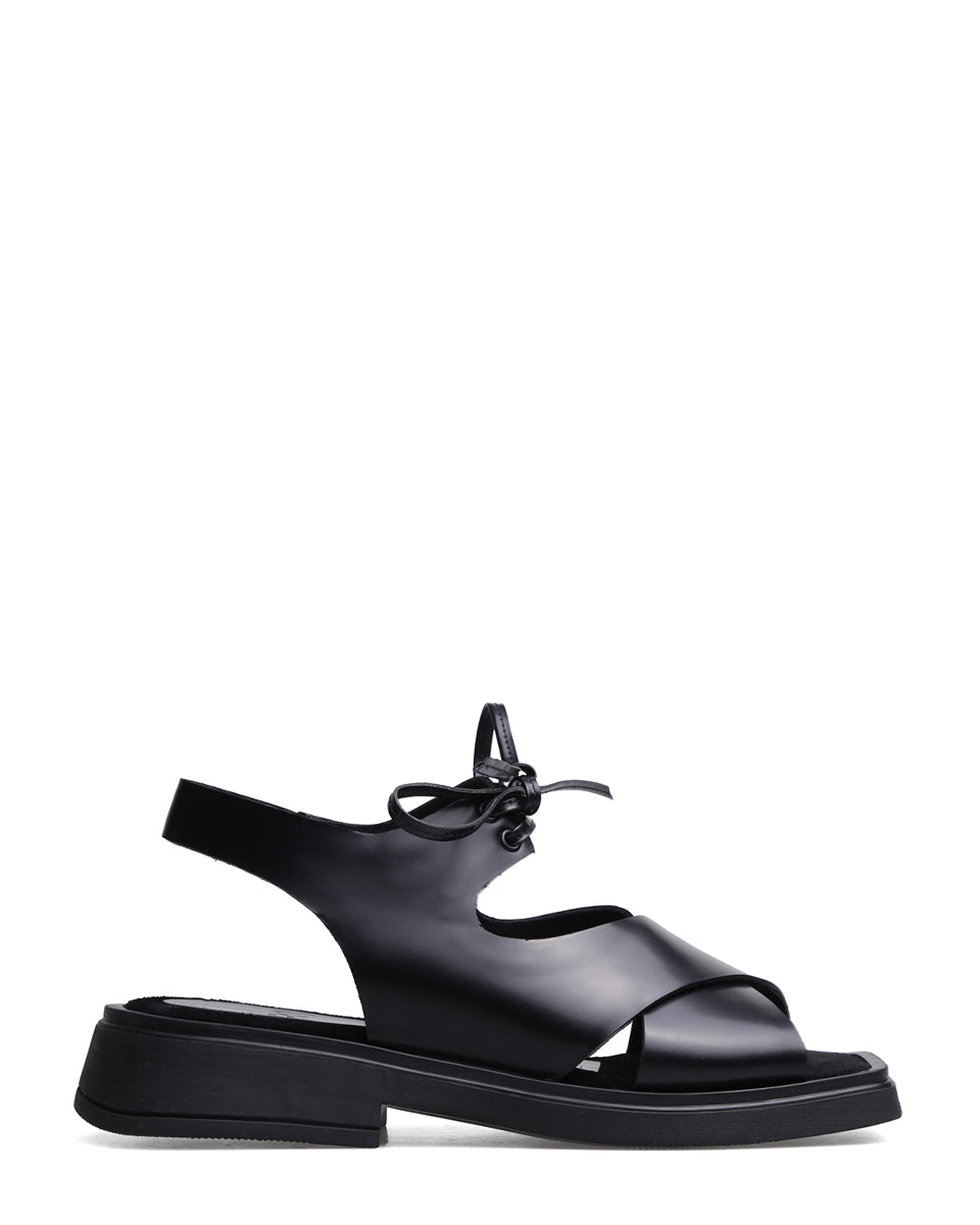 EDA es una sandalia de charol de cuero forrada en cuero, con terminación al corte. Su diseño sin costuras resalta la pureza de las líneas y el brillo del material. Con tiras cruzadas y ajuste con cordón al frente, combina originalidad y sujeción. Moderna, cómoda y distintiva: un calzado que eleva cualquier outfit.