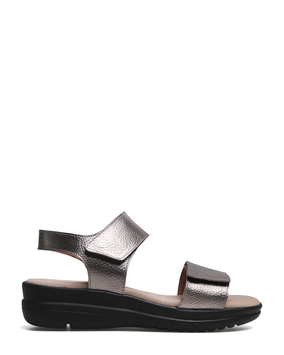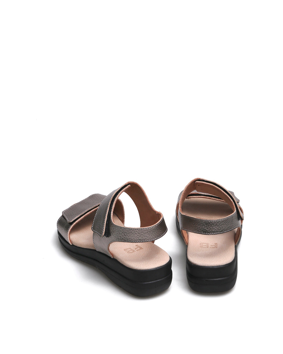 HELEN es una sandalia confortable con velcros. Está realizada en cuero vacuno con acabado metalizado y forrada en cuero. Tanto la tira como la pulsera cuentan con velcro para lograr el ajuste perfecto. La suela es cómoda y liviana, con una ligera pendiente. HELEN es un calzado práctico, pensado para uso habitual.