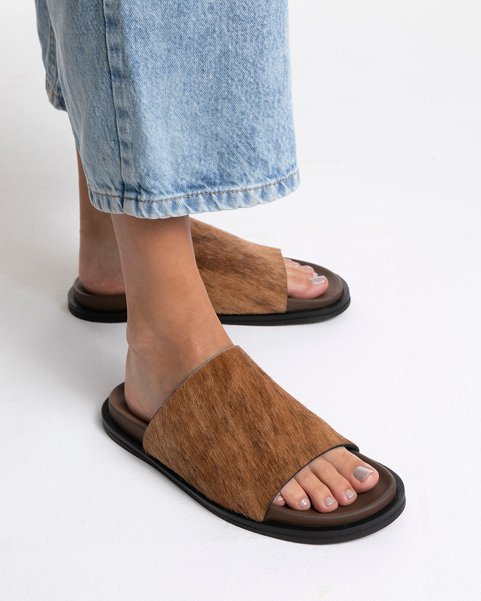 JARA es una sandalia de calce directo con una faja ancha que aporta carácter y estilo. Su acabado con textura única se presenta en dos versiones distintas, ambas diseñadas para destacar. La plantilla forrada en cuero y la base flexible aseguran comodidad, mientras que su diseño llamativo la convierte en un ítem trendy que realza cualquier look.
