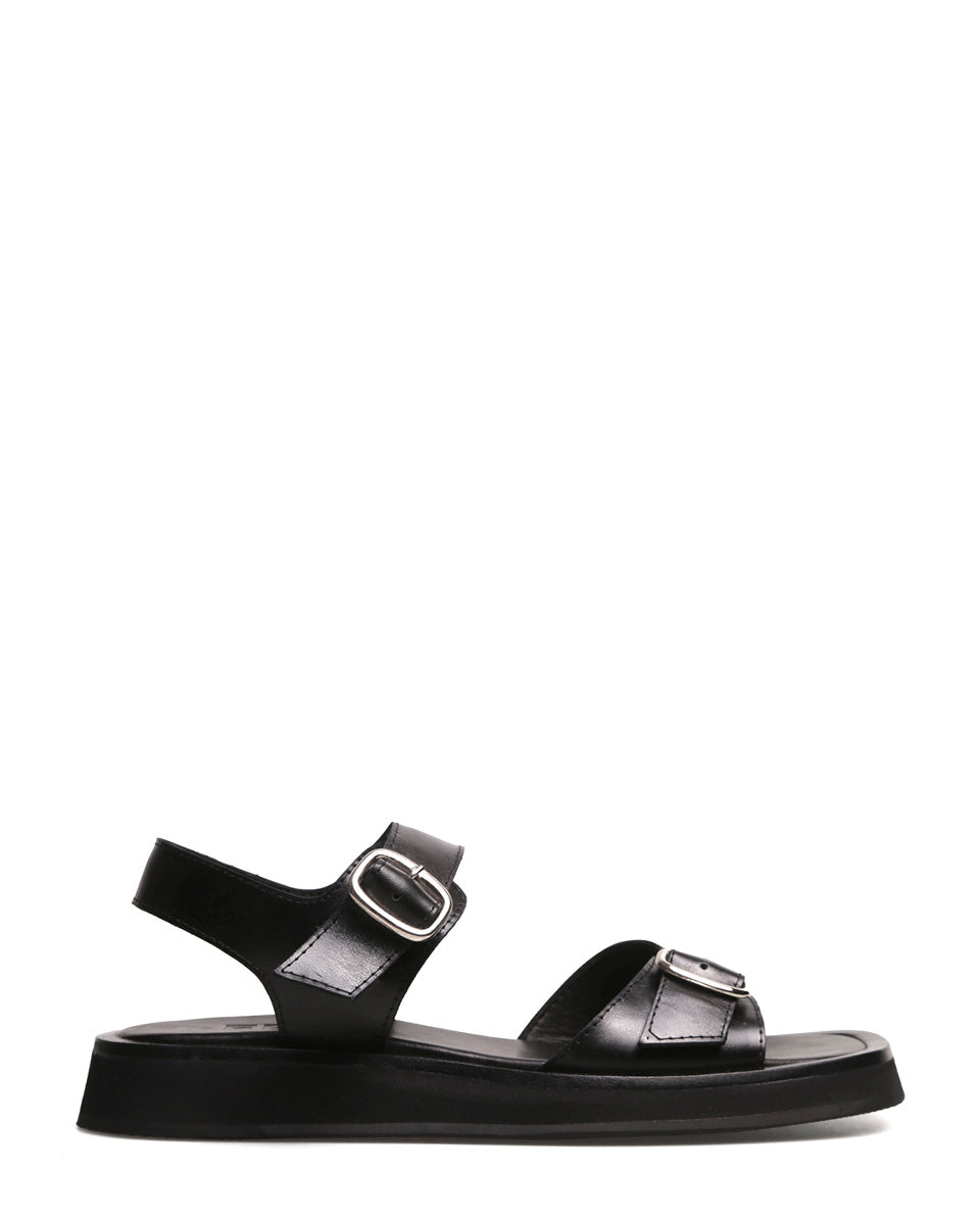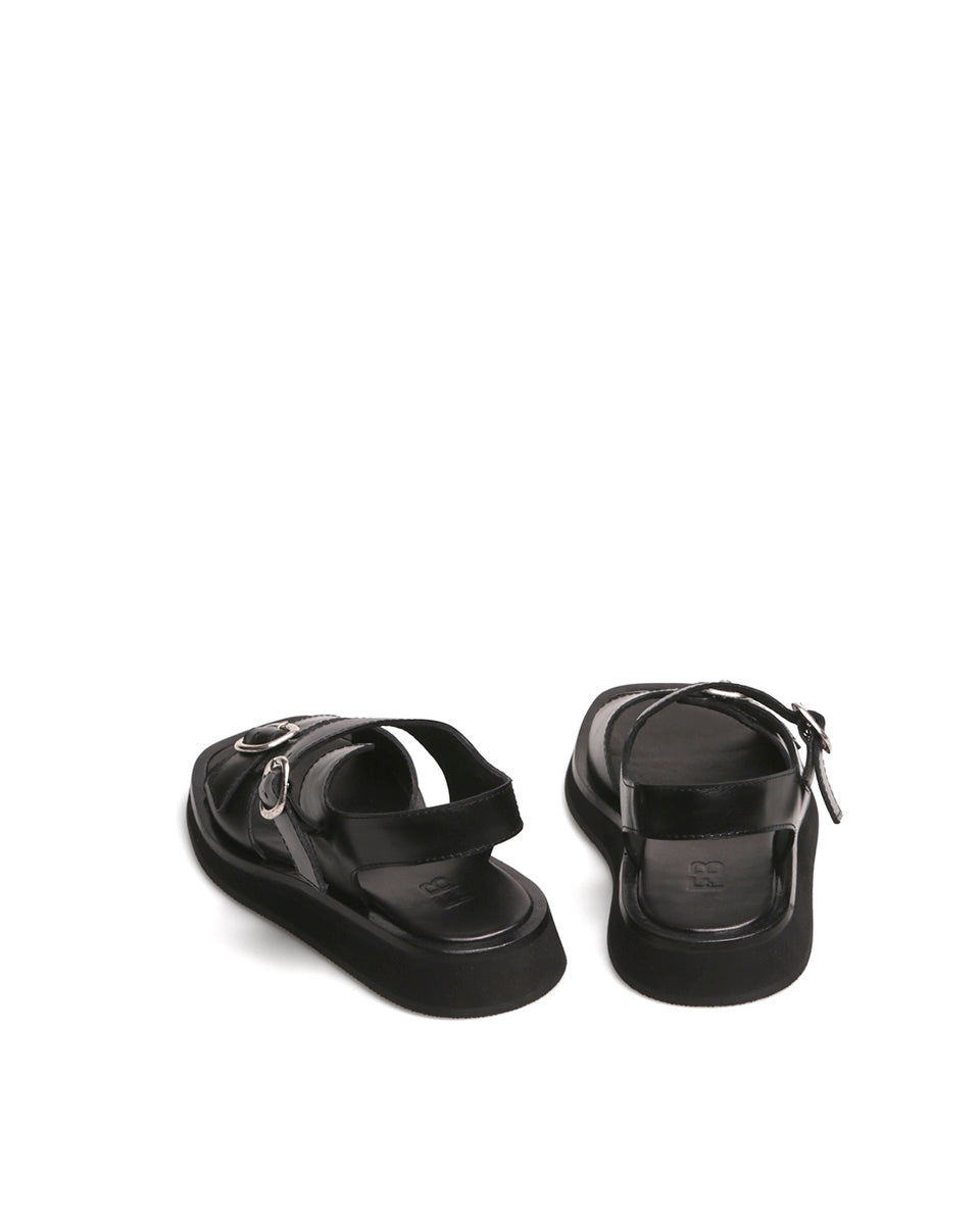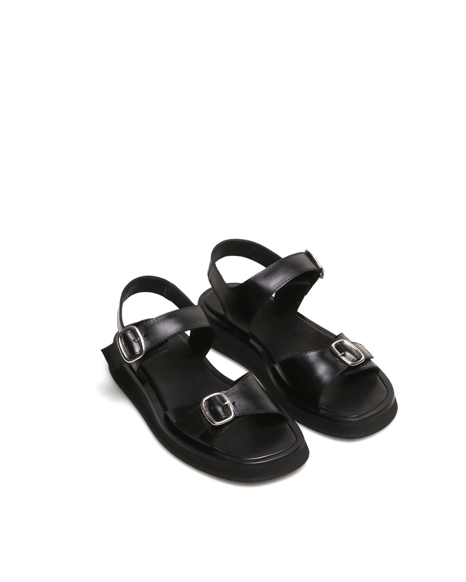 JENY es una sandalia baja con base liviana y diseño clásico. Cuenta con una pequeña faja que se adapta a la forma del pie y una pulsera. Ambas piezas tienen una hebilla de níquel que le suma personalidad. La puntera cuadrada le da un toque moderno y a la vez atemporal.