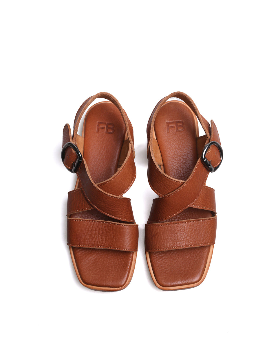 LENNER es una sandalia clásica y atemporal, realizada en cuero con acabado rústico y suela en cuero natural. Sus tiras cruzadas con hebilla de níquel aportan carácter, mientras que la puntera cuadrada y el pequeño taquito con tapa de goma la hacen práctica y cómoda para todos los días.