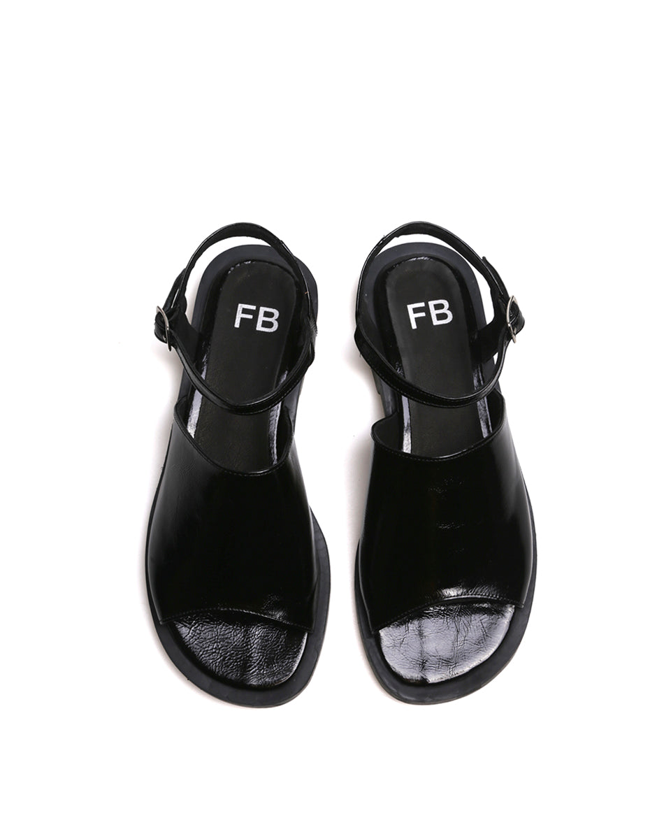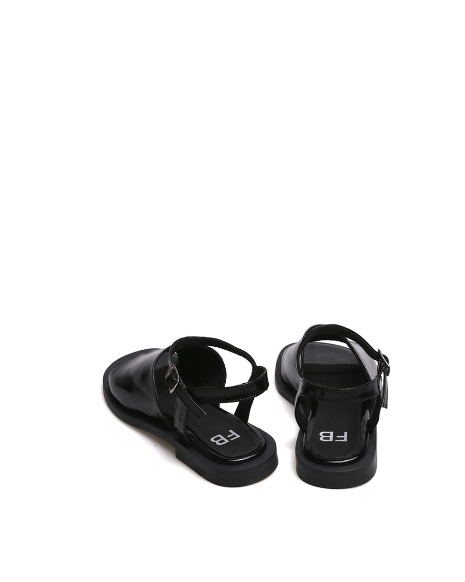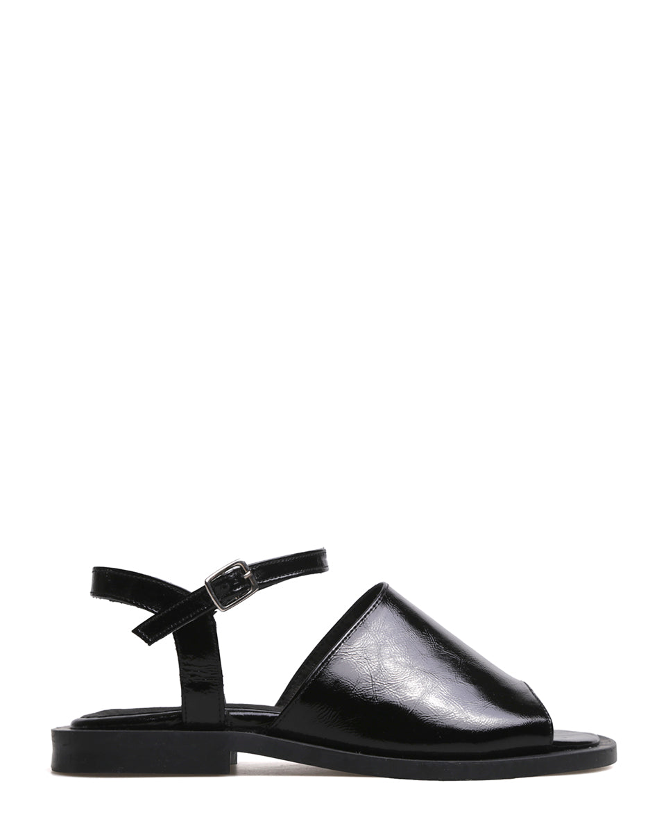 LIZ es una sandalia plana de charol forrada en cuero con suela de goma. Su diseño se caracteriza por el contraste visual que genera su faja ancha en la capellada con una delicada pulsera al tobillo. El resultado es una sandalia chata, cómoda, elegante y original.