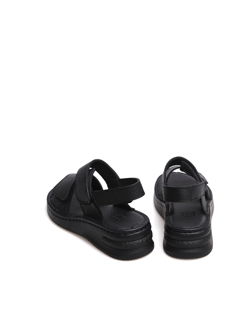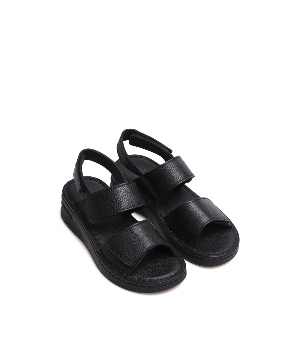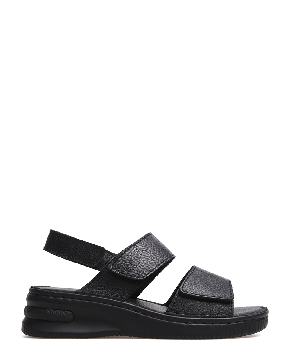 NUNA es una sandalia pensada para la comodidad diaria. Tiene base flexible de poliuretano y plantilla mullida que acompaña la pisada. Sus tiras anchas con cierre de velcro permiten un calce regulable, adaptable también a pies anchos. Confeccionada en cuero graneado, es ideal para un uso frecuente y confortable.