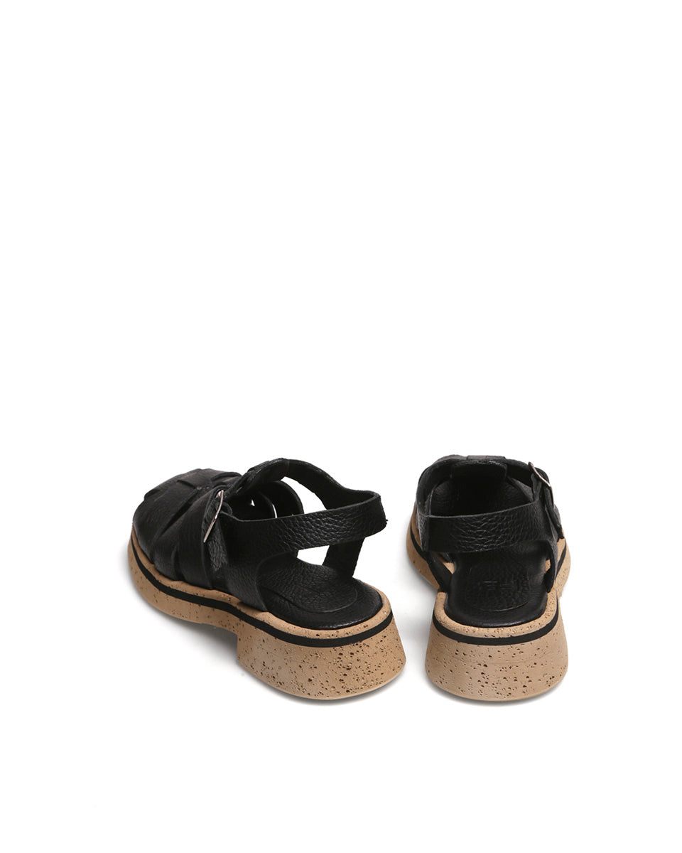 SUCA es una sandalia estilo franciscana de cuero con base artesanal de eva. Su diseño envuelve el pie con un efecto visual de zapato calado. La plataforma, liviana y contrastante, resalta el tono del cuero, mientras que la puntera suavemente cuadrada aporta un aire actual. Un modelo fresco y adaptable, que también podés personalizar sumando medias para un look distinto.