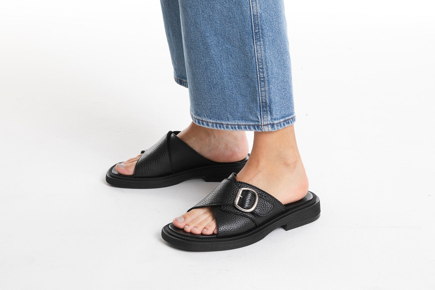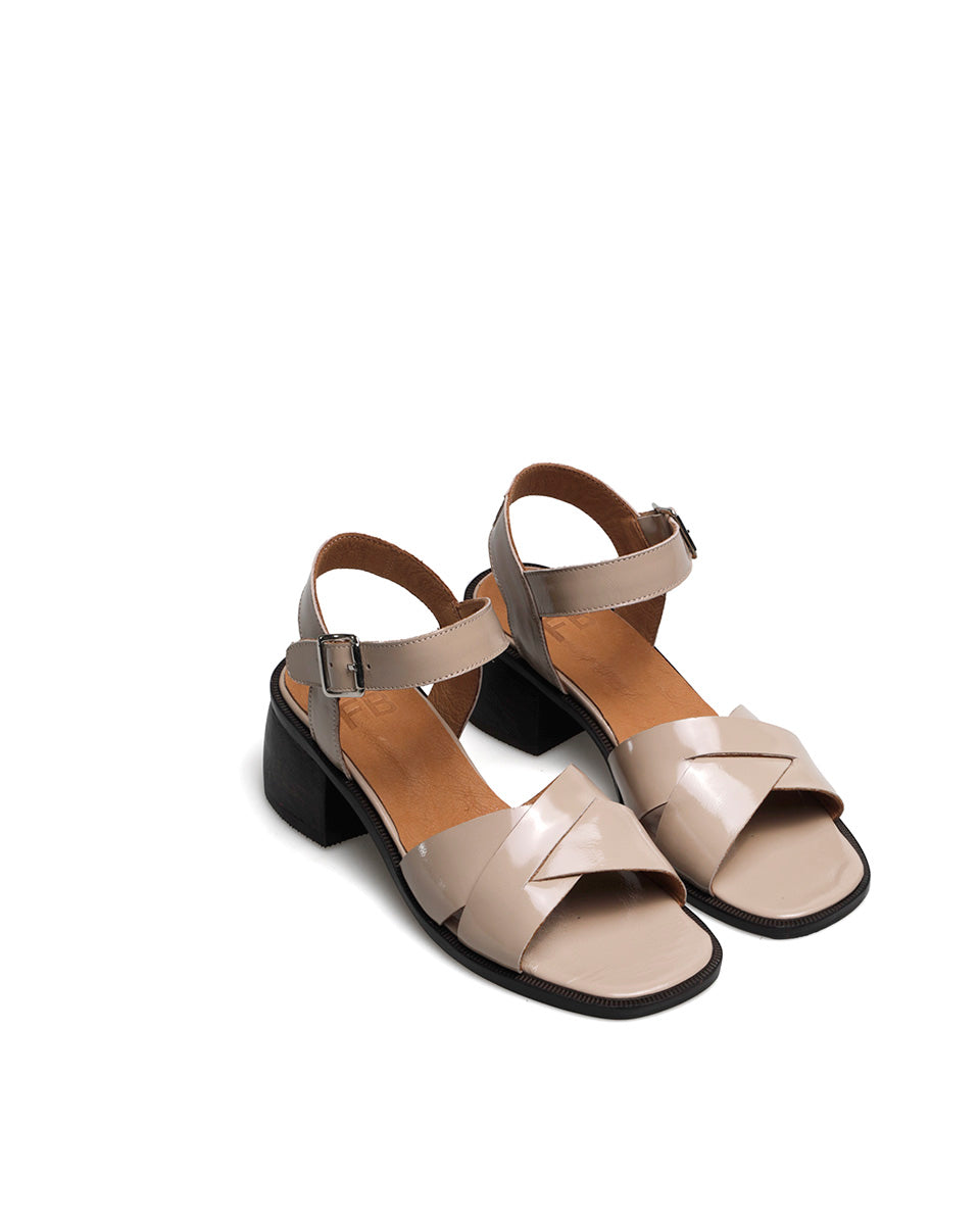 VILE es una sandalia de charol con taco bajo y tiras cruzadas. Es un calzado súper versátil que resulta cómodo, elegante y fácil de combinar a la vez.