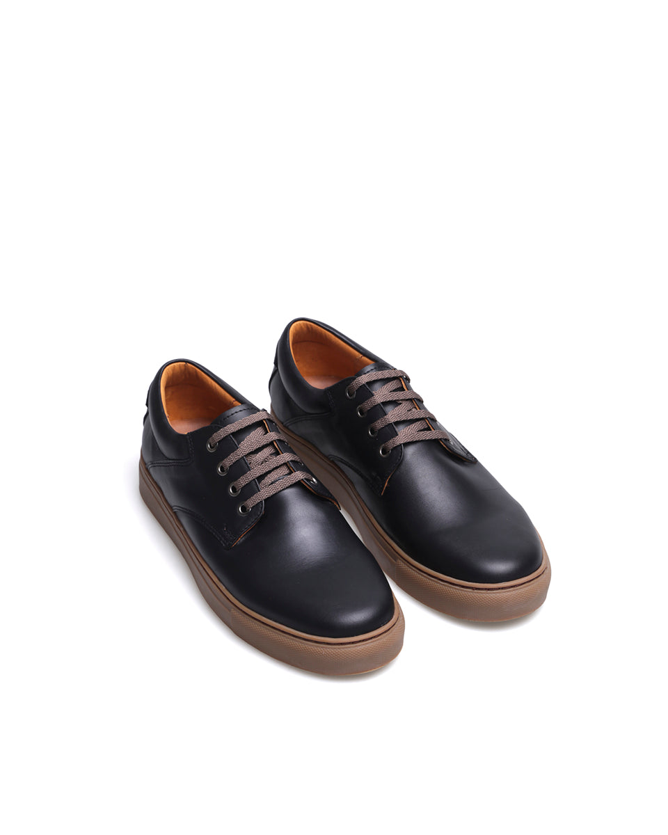 RODIO es una zapatilla urbana básica. Está realizada en cuero vacuno color marrón, forrada en cuero. La suela de goma se encuentra pegada y cosida para una mayor durabilidad. Por su diseño RODIO es un calzado que, al tener sólo cuatro ojales, da un efecto entre zapato y una zapatilla.