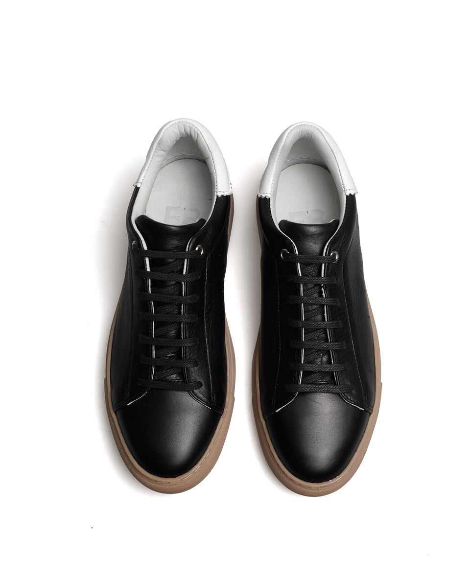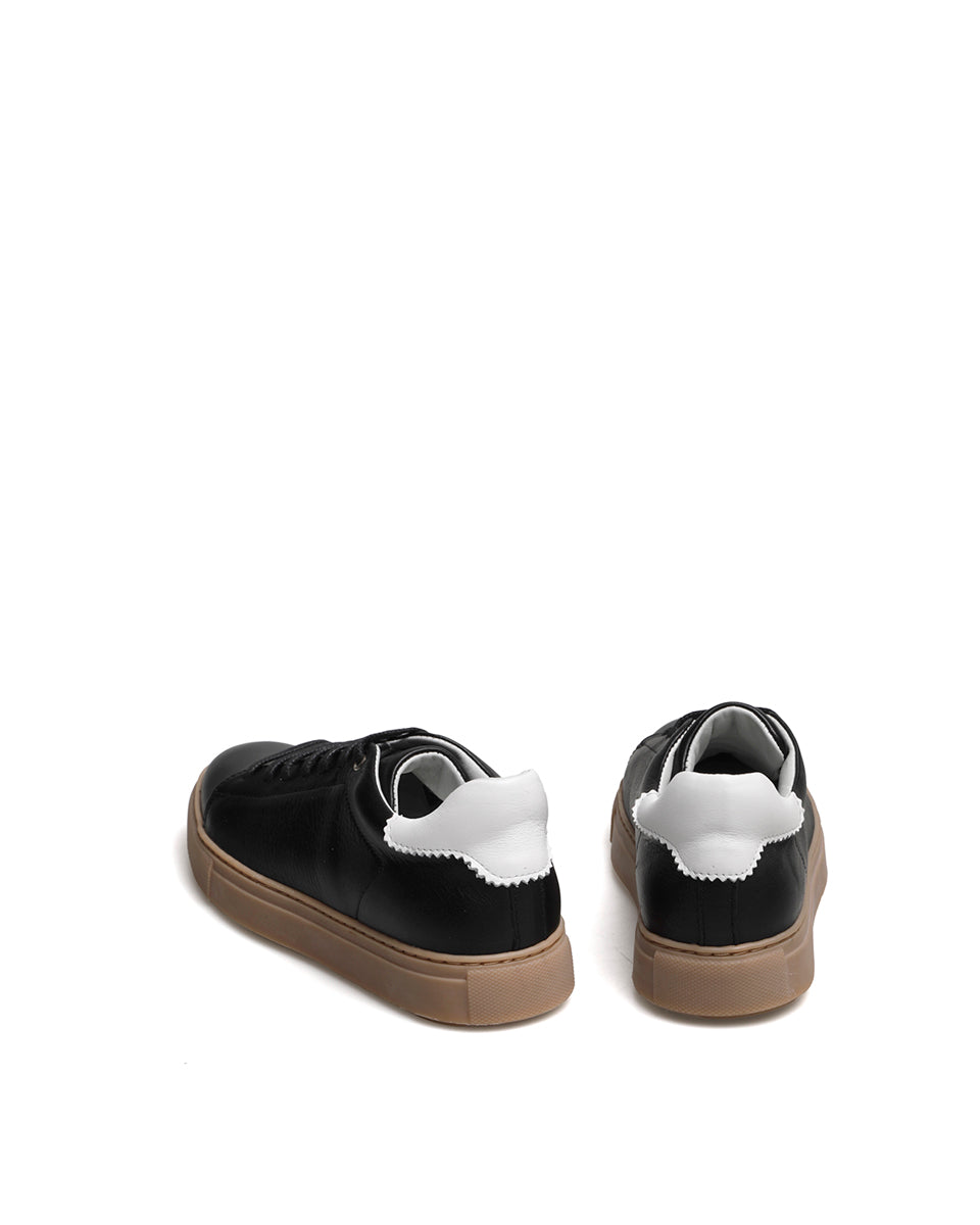 TARAN es una zapatilla de cuero, forrada íntegramente en el mismo material para mayor confort y durabilidad. Su diseño clásico y neutro se realza con el detalle del talón en color crudo, que aporta contraste y carácter. La suela de goma, pegada y cosida, asegura resistencia y un uso prolongado, convirtiéndola en un básico versátil para todos los días.