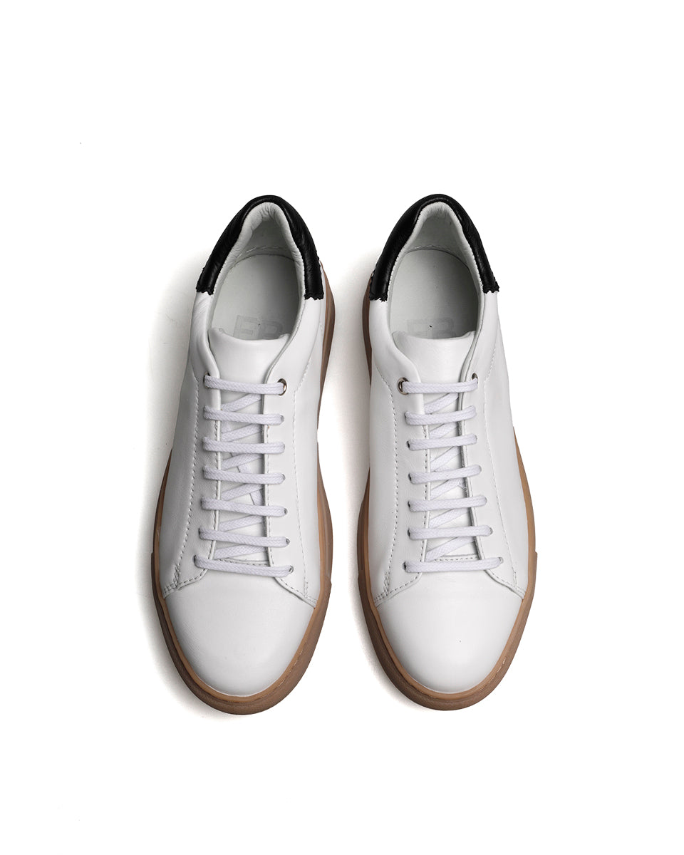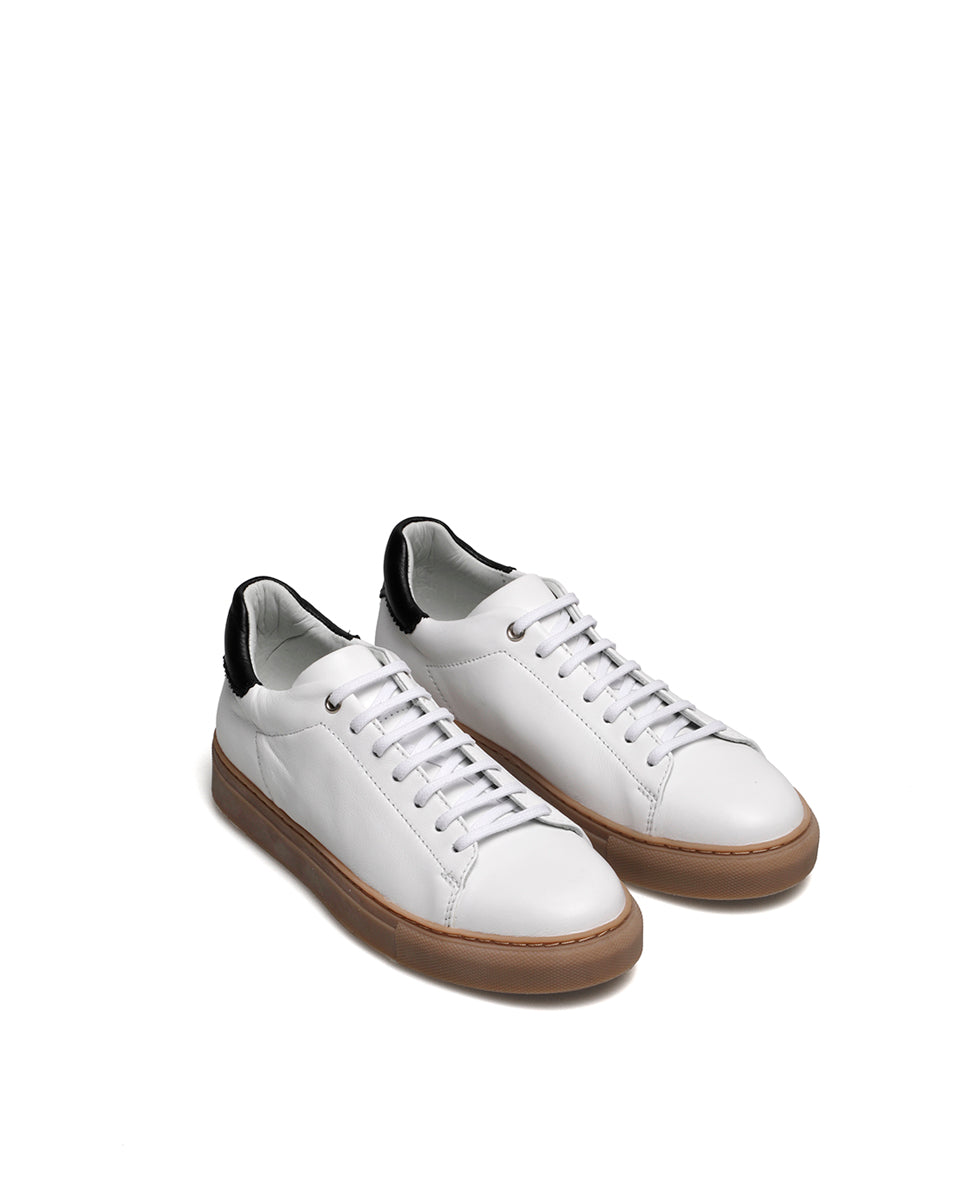 TARAN es una zapatilla de cuero, forrada íntegramente en el mismo material para mayor confort y durabilidad. Su diseño clásico y neutro se realza con el detalle del talón en color negro, que aporta contraste y carácter. La suela de goma, pegada y cosida, asegura resistencia y un uso prolongado, convirtiéndola en un básico versátil para todos los días.