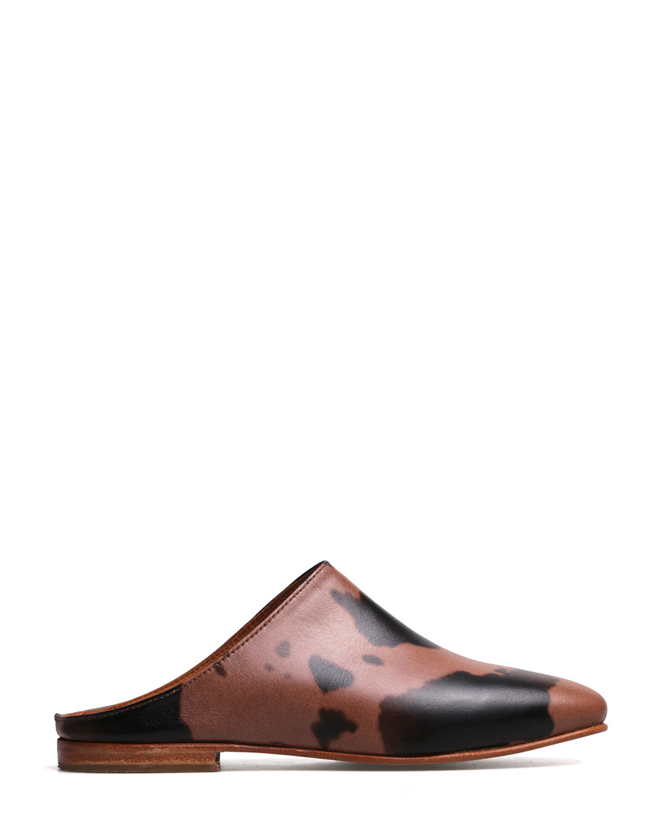 BE es un zueco confeccionado en cuero con acabado print y forro interior de cuero. Su diseño estilizado, con puntera ligeramente cuadrada y suela de cuero, lo convierte en un modelo simple, versátil y elegante. Ideal para sumar un detalle original a cualquier look.