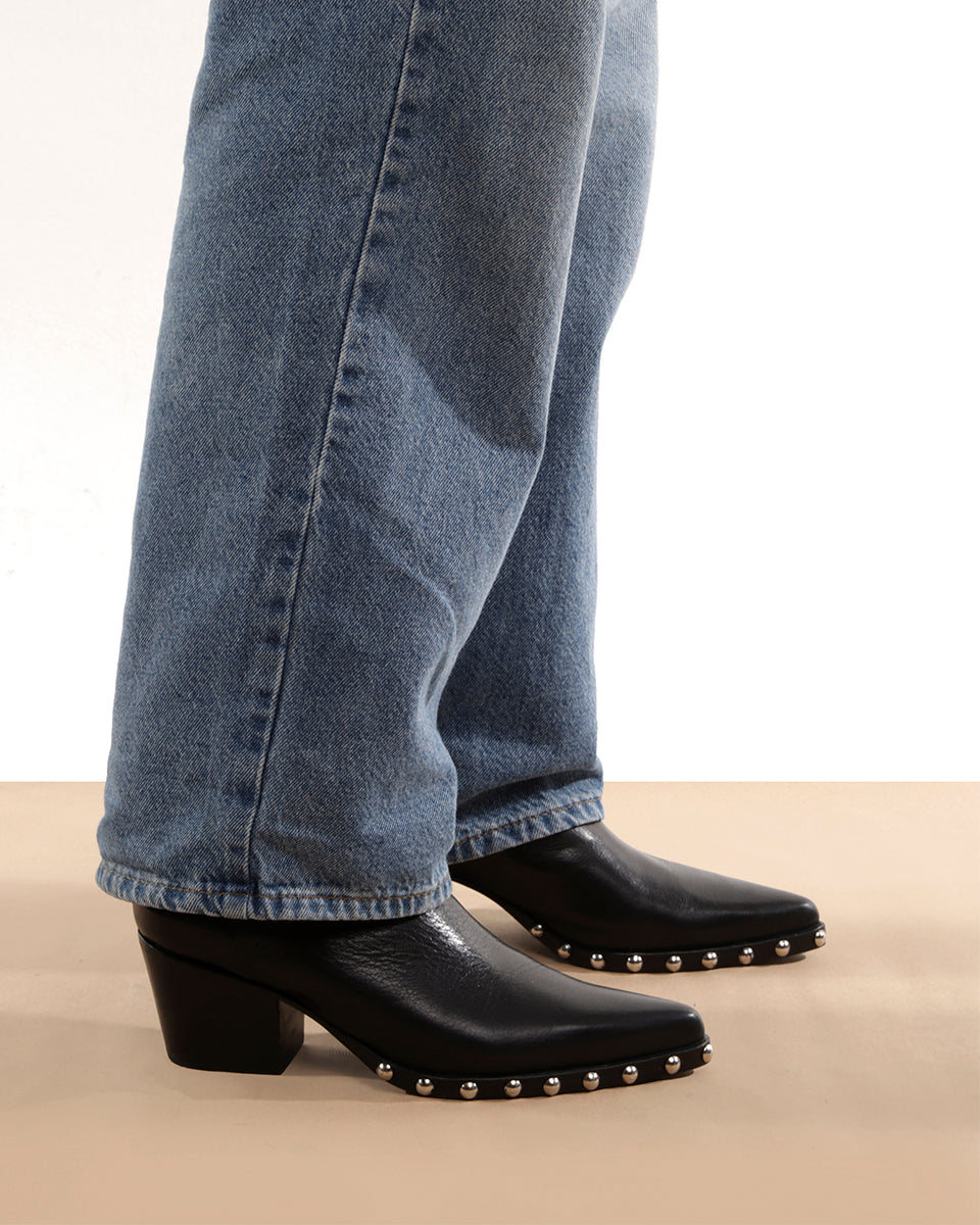 BEX es un zueco con taco texano, en punta. Está realizado en cuero bridge, es decir que cuenta con un acabado natural que resalta el carácter único de cada pieza. La punta es estilizada y el cuero está remachado con tachas redondas color plata.
